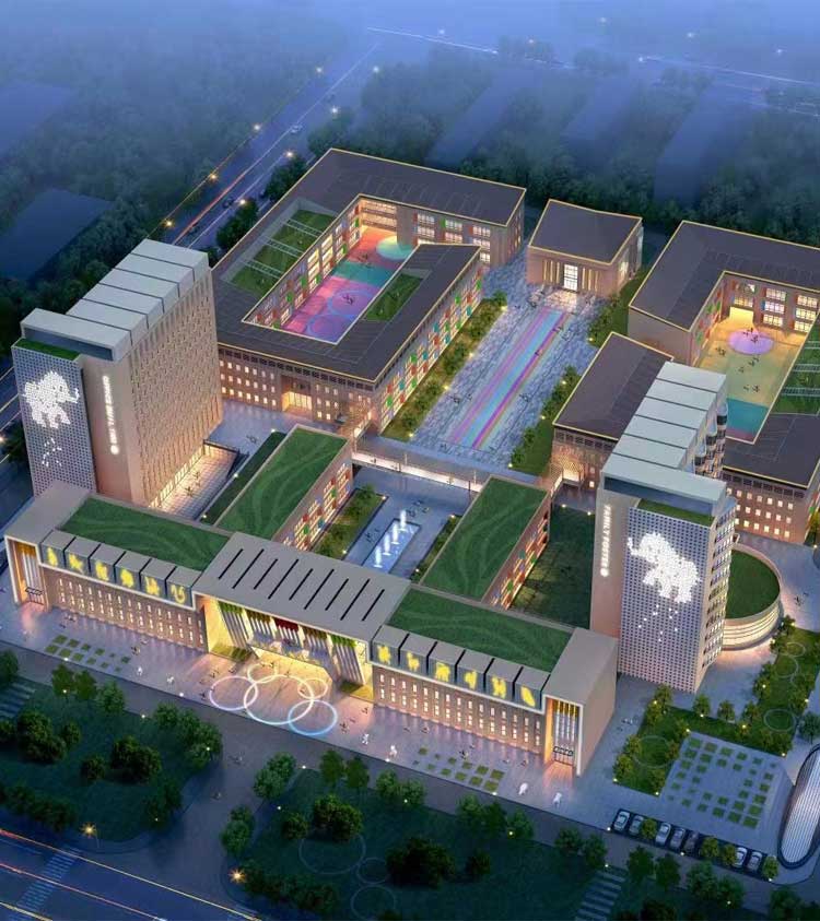 簡介—— 西安市兒童福利院亮化工程,主要是采用線條燈對樓體的頂部和側面輪廓進行勾勒,主樓安裝十二生肖發光造型,側墻采用圖案燈進行動畫投影,打出絢麗多彩的動畫卡通人物,與建筑的實用完整結合。